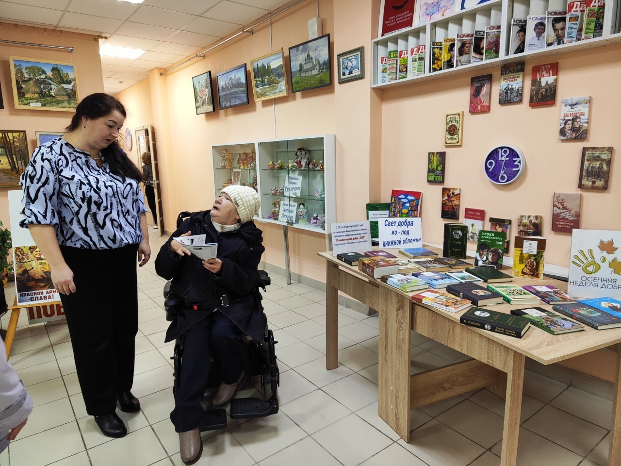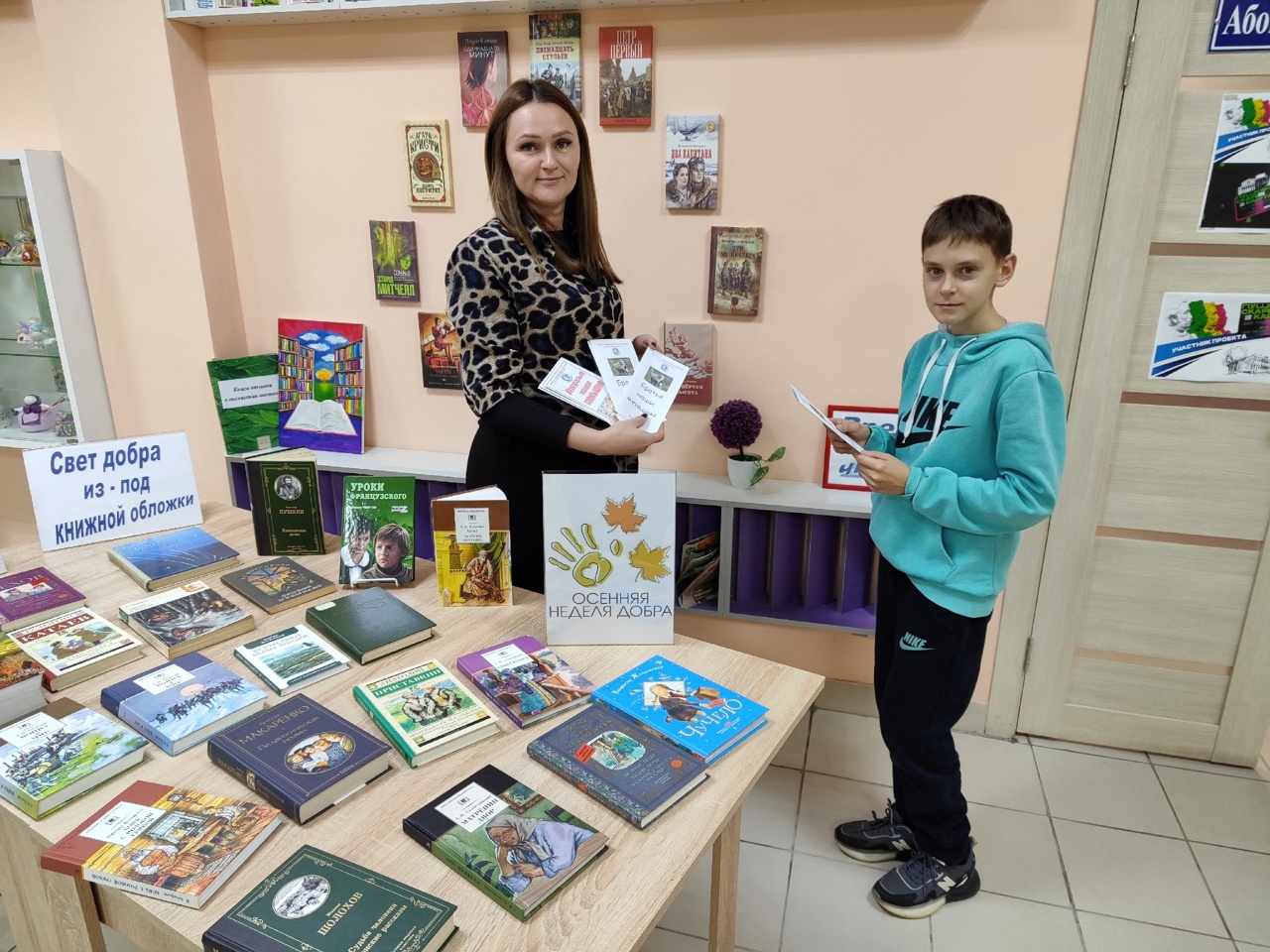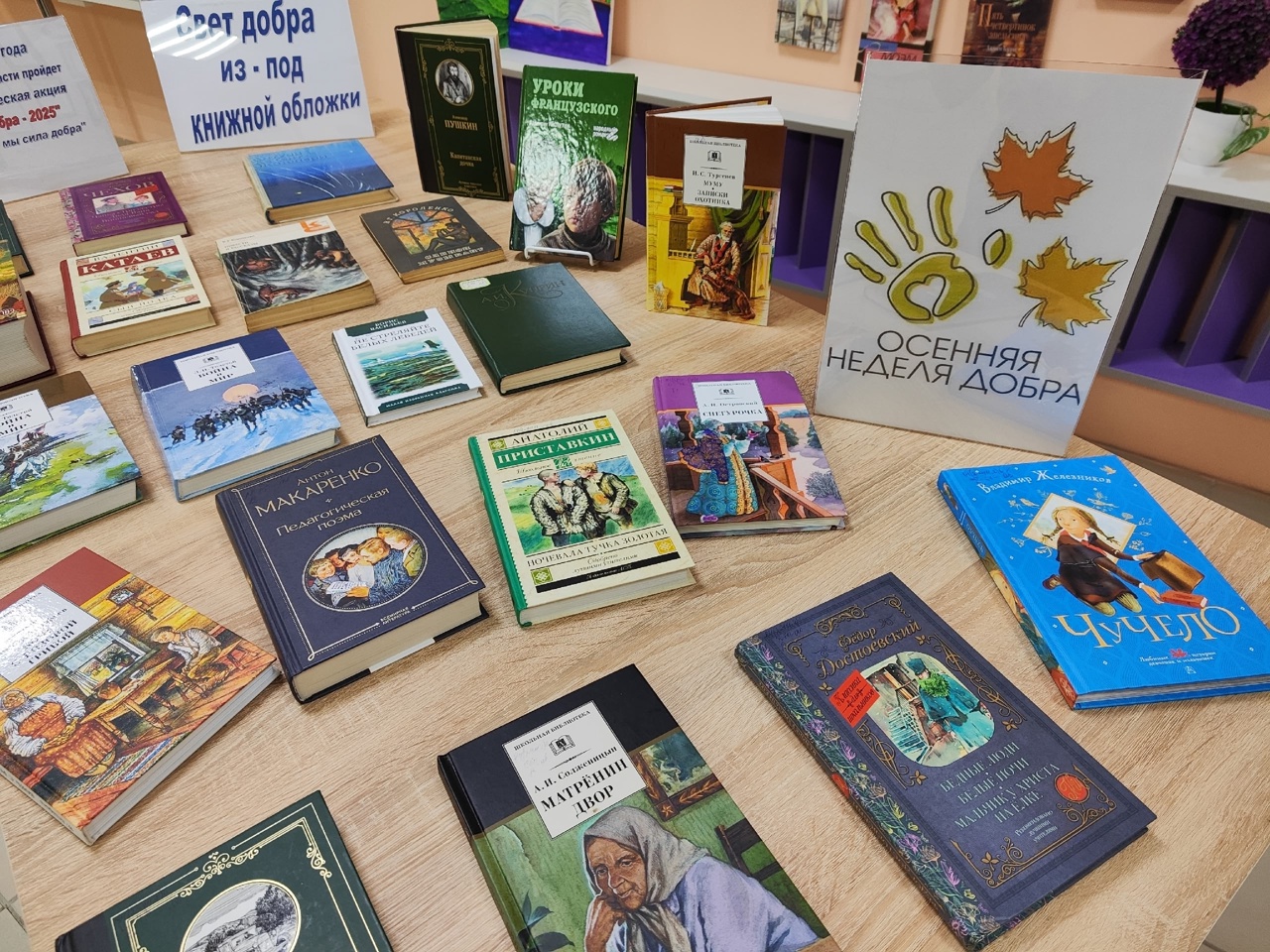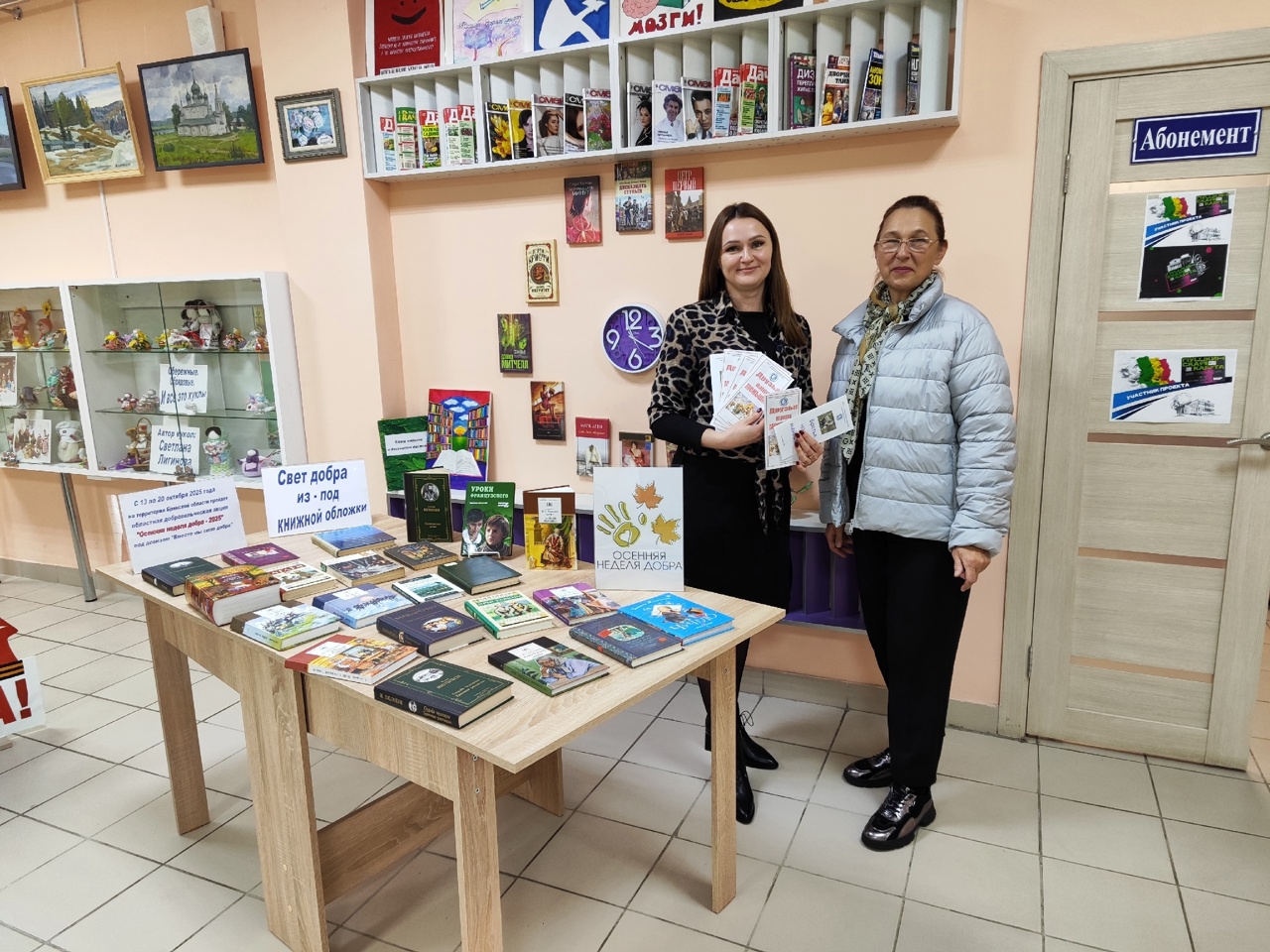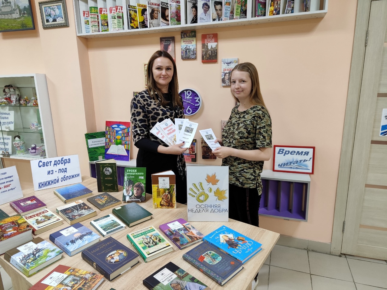 В рамках акции, в холле библиотеки работала выставка литературы «Свет добра из-под книжной обложки». У выставки проводились рекомендательные обзоры, беседы о представленных на ней книгах.