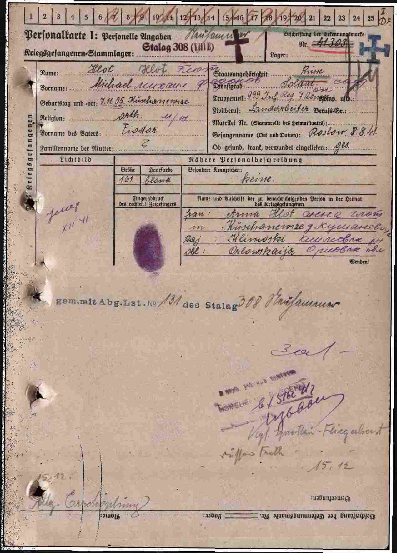 Глот Михаил Федорович24.10.2025 Просмотров: 8 Глот Михаил ФедоровичУроженец с.Куршановичи 1905 года рождения русский . Призван Климовским. РВК,999сп,258сд, рядовой. Пропал без вести 12.1941г. Челховское сельское поселение