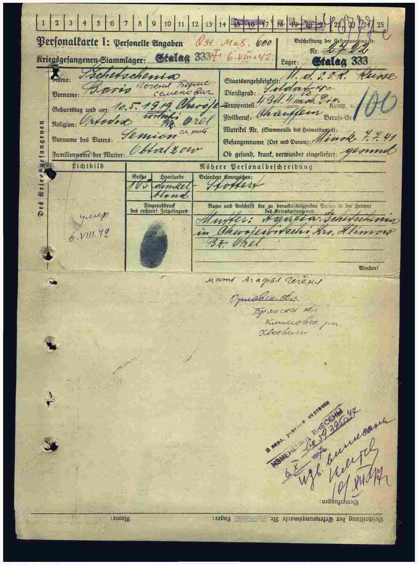 Чеченя Борис Семенович05.11.2025 Просмотров: 12 Чеченя Борис СеменовичУроженец с. Фоевичи 1919 года рождения , русский, чл. КПСС. Призван Климовским РВК, сержант. Умер от ран 12.1943г. Похоронен: Германия. Челховское сельское поселение