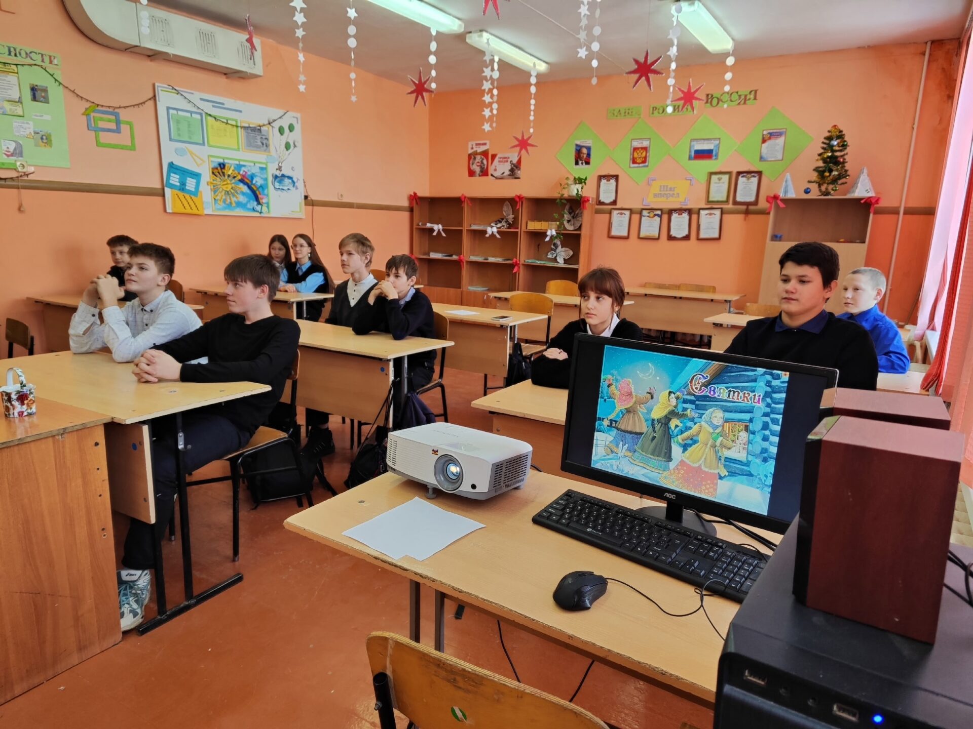 В рамках Года единства народов России библиотекари Климовской центральной библиотеки подготовили для учащихся 7 класса КСОШ № 1 (классный руководитель – Чернявская Е.В.) мероприятие, посвященное одному из самых древних и почитаемых праздников русской культуры – Святкам. А чтобы глубже понять смысл праздника, ребята отправились в удивительное историческое путешествие. Ведущие рассказали, почему именно Святки являются особым периодом, связанным с ожиданием чудес и исполнением желаний. Учащиеся узнали, что раньше в эти дни принято было ходить друг к другу в гости, петь колядки и дарить подарки.